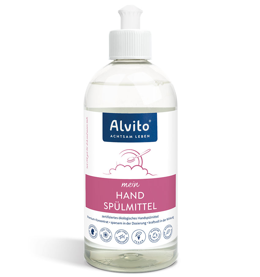 Das Alvito Handspülmittel verfügt über eine konzentrierte Reinigungskraft. Der Umwelt zuliebe sollte es deswegen sparsam dosiert werden. Ein bis zwei Spritzer sind vollkommen ausreichend, um Ihr Geschirr sicher zu reinigen.