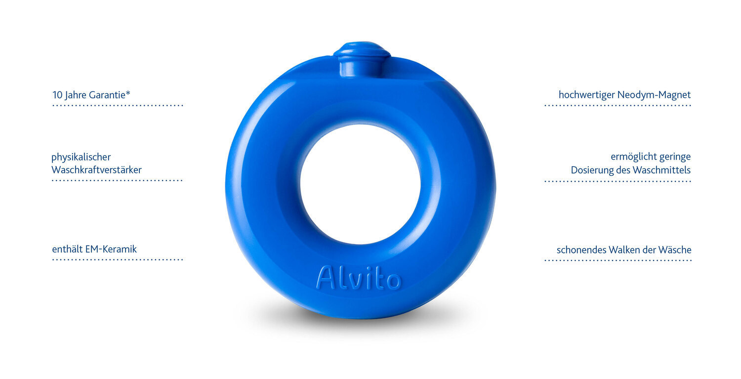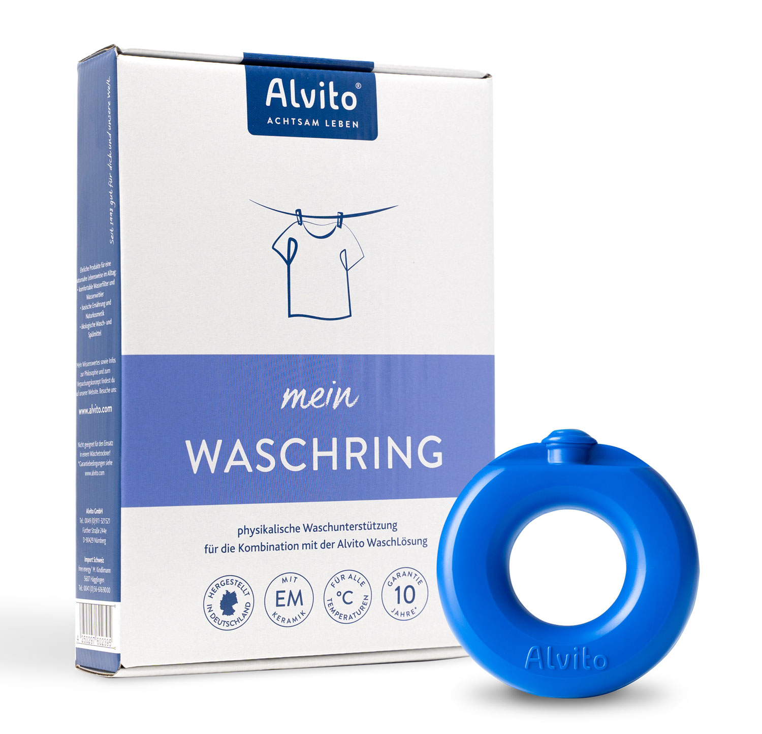 Der Alvito Waschring darf beim bewussten Umgang mit Wasch- und Spülmitteln nicht fehlen. Aufgrund seiner besonderen Verarbeitung wirkt er speziell auf die Strukturen des Wassers ein. Das sorgt nicht nur für einen niedrigeren Waschmittelverbrauch, sondern verhindert auch Kalkablagerungen. Eingesetzt werden kann der Alvito Waschring sowohl in der Waschmaschine als auch in der Spülmaschine.