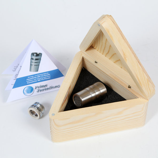 Aquawhirler Piccolo kommt inklusive Adapter. Den Wasserwirbler können Sie somit auf jeden handelsüblichen Wasserhahn aufschrauben. Er passt für Wasserhähne mit M22x1 Außen-Feingewinde oder mit einem M24x1 Innengewinde.