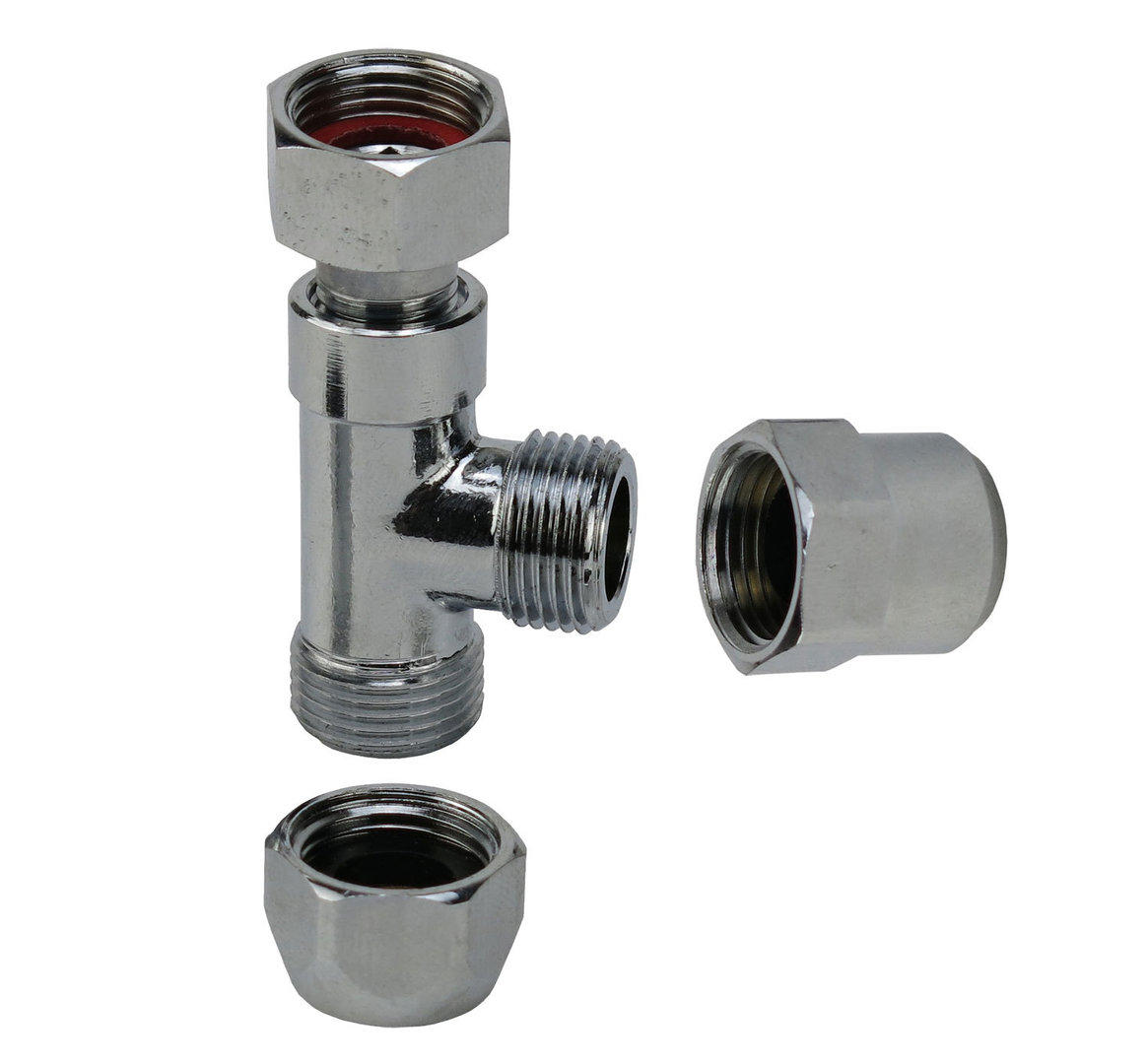 T Stück 3/8" Messing verchromt mit Dichtung