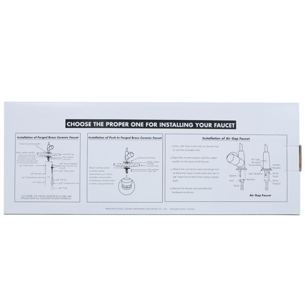Bitte beachten Sie, dass für die Montage des Umkehrosmose Wasserhahn Chrom modern ein Loch von einem Durchmesser von 12 mm benötigt wird. Dieses können Sie entweder in die Arbeitsplatte oder in das Spülbecken bohren.